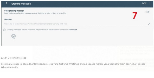 - Keempat : Edit Greeting Message. Greeting Message ini akan dihantar kepada mereka yang first time WhatsApp anda & kepada mereke yang tidak aktif lebih dari 14 hari selepas WhatsApp anda.