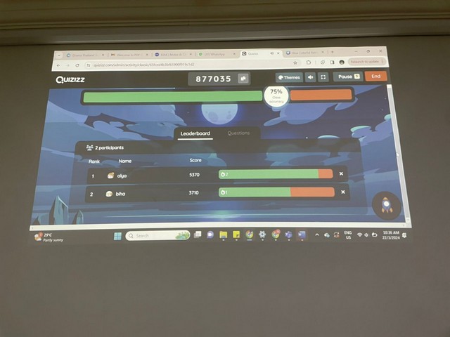 Aktiviti yang dilakukan sangat memuaskan kerana pelajar dapat belajar topik baru dan bersama-sama mengulangkaji kesalahan jawapan dalam kuiz yang telah dijawab oleh peserta.