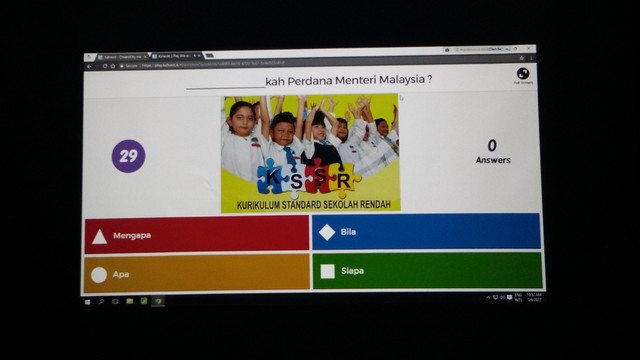 Diakhir soalan, kedudukan setiap pelajar akan ditayangkan di hadapan mengikut jumlah quiz yang berjaya dijawab dan kepantasan mereka ketika menjawab soalan. Pembelajaran secara online yang menarik dan menghiburkan menjadikan pelajar lebih fokus kepada pembelajaran yang dijalankan. Selepas aktiviti pembelajaran dijalankan, pelajar akan diajar cara-cara untuk menggunakan carian di google dan mereka perlu melukis gambar yang telah mereka cari.
