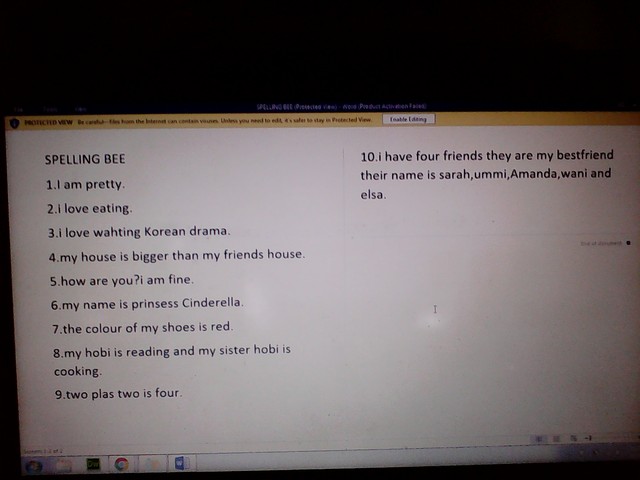 22 Julai 2017 | Aktiviti TerkiniPI Telok Rimba telah menganjurkan kelas Bahasa Enggeris kepada peserta kategori bawah 12 tahun dimana aktiviti yang dianjurkan adalah Spelling Bee. Staff PI akan menyebut ayat-ayat didalam Bahasa Enggeris secara lisan dan peserta perlu menaip perkataan tersebut didalam Microsoft Office Words dalam tempoh masa yang diberikan. Diakhir kelas, peserta perlu memeriksa perkataan yang ditaip samada betul atau salah dan pengajar akan mengajar penggunaan grammar yang betul.