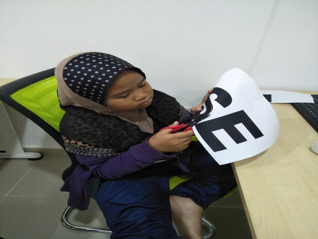 Untuk itu, mereka perlu mereka di Microsoft word sebelum mereka perlu print out di atas kertas yang berbeza warna. Seterusnya, peserta perlu menggunting templat yang diberikan sebelum ditampal di kawasan yang diberikan mengikut posisi yang telah dibincangkan.