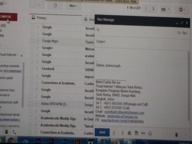 Seterusnya, mereka akan diajar untuk menggunakan email messenger dimana mereka boleh berkomunikasi sesame pengguna email messenger dengan menggunakan mesej atau panggilan video.