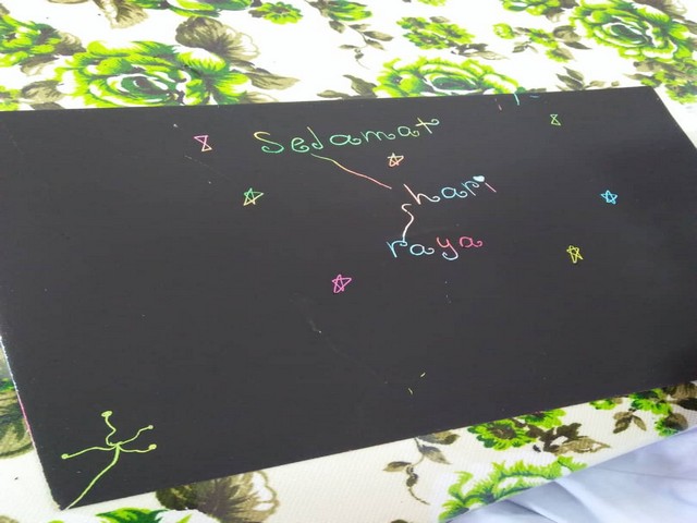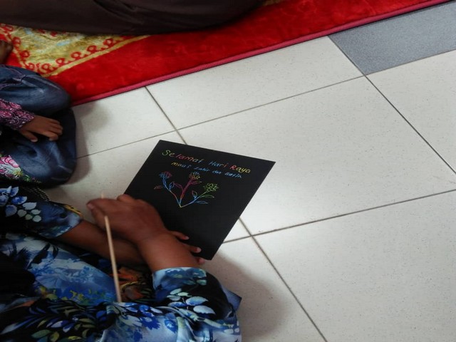 Melalui aktiviti ini, peserta dapat mengembalikan adat hari raya yang semakin lama hilang dimamah kemodenan iaitu menulis kad hari raya dan juga memberi kad hari raya kepada rakan-rakan.