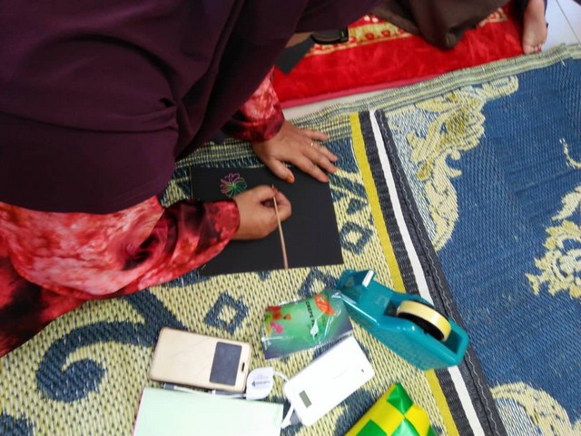 8 Jun 2018 | Aktiviti TerkiniPerpustakaan Desa Telok Rimba bersama Pusat Ekonomi Digital Telok Rimba telah mengadakan aktiviti Kad Raya bagi kategori Dewasa. Program Kad Raya ini adalah bersempena Hari Raya yang akan berkunjung tiba tidak lama lagi. Peserta yang hadir akan diberi bahan-bahan utnuk membuat kad raya seperti kertas, lidi dan lain-lain. Mereka akan membuat kad raya untuk rakan-rakan yang hadir pada hari tersebut. Peserta yang hadir juga digalakkan menulis ucapan hari raya untuk penerima kad raya mereka. Kertas ini memerlukan peserta untuk mengikis dengan menggunakan lidi untuk menunjukkan warna yang berwarna-warna yang berada dibawahnya.