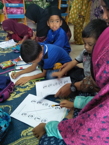 Seterusnya, peserta kanak-kanak akan dipertontonkan dengan video-video pendek yang mempunyai nilai-nilai murni. Mereka juga akan diberi kuiz Bahasa Melayu untuk dijawab oleh peserta. Seterusnya, aktiviti diteruskan dengan marhaban dan bacaan ayat-ayat suci al-quran yang diketuai oleh guru Tabika kemas, Pn Jaharah. Diakhiri dengan jamuan ringan dan penyampaian hadiah kepada peserta bagi setiap aktiviti.