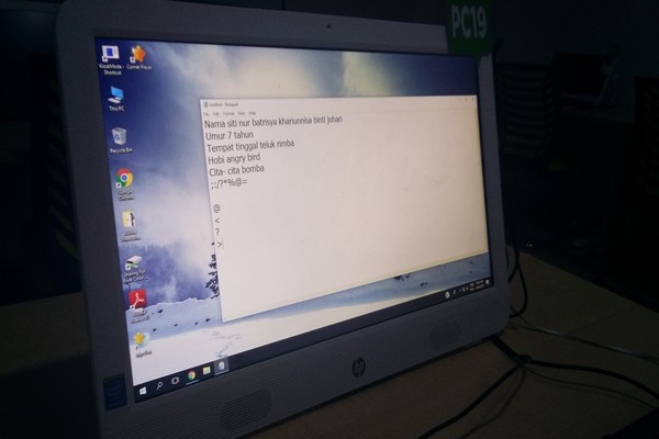 Kemudian peserta diajar pula cara memasukkan nombor dan simbol yang ada pada papan kekunci. Semua di lakukan didalam “Notepad” dan cara penggunaan yang betul, dan peserta akan diberi tugasan untuk menyiapkan sebelum pulang. Tugasan tersebut adalah untuk dipraktikan oleh peserta untuk mengetahui peserta paham atau tidak apa yang telah dipelajari di dalam kelas.