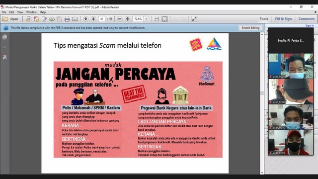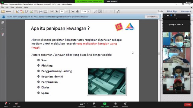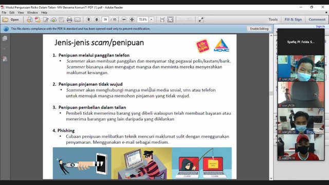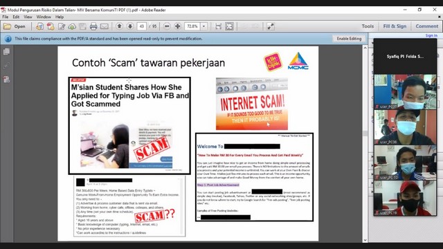 6 Disember 2020 | Aktiviti TerkiniPusat Ekonomi Digital Telok Rimba bersama Pusat Ekonomi Digital Pekan Sagil, Pusat Ekonomi Digital Felda Sri Ledang, Pusat Ekonomi Digital Felda Sri Jaya dan Pusat Ekonomi Digital Kampung Parit Haji Idris telah mengadakan aktiviti berkenaan KDB Awareness kepada komuniti. Aktiviti yang dilakukan secara online, ini bertujuan untuk memberikan pendedahan kepada komuniti berkenaan penipuan didalam talian. Selain daripada taklimat KDB, kuiz secara online juga telah diadakan untuk meningkatkan kefahaman peserta semasa taklimat.