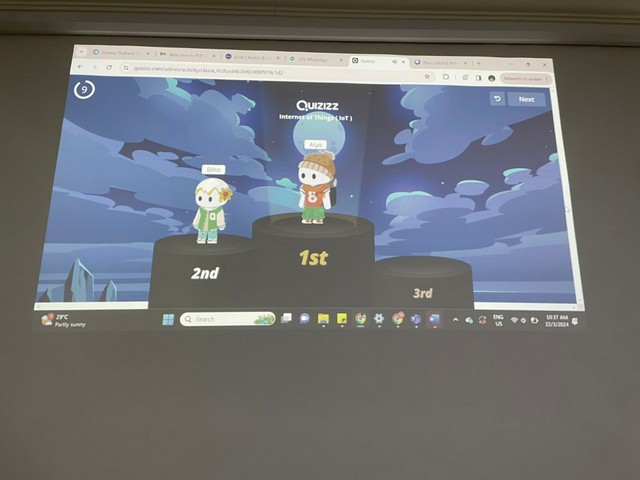 23 Mac 2024 | Aktiviti TerkiniNADI Telok Rimba telah mengadakan kelas bersama peserta di bawah umur 15 tahun dan bersama-sama belajar tentang IoT. Selepas ilmu tentang IoT diterangkan, staf menyediakan kuiz yang dicipta sendiri dengan menggunakan laman sesawang “Quizzez”.