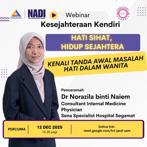 11 Disember 2025 | Aktiviti TerkiniHati Sihat, Hidup Sejahtera β Kenali Tanda Awal Masalah Hati Dalam Wanita | W106