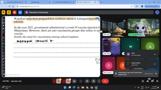 17 Oktober 2025 | Aktiviti TerkiniPelajar daripada komuniti teluk rimba telah menyertai Kelas tusyen Sains & Pengajian AM yang berlangsung secara dalam talian menggunakan laman sesawang NADI Dilea di NADI Teluk Rimba.