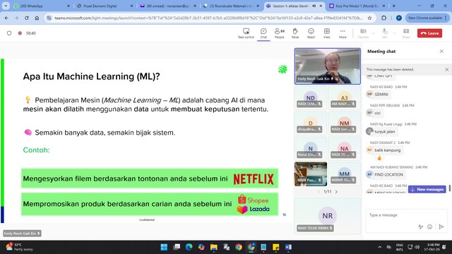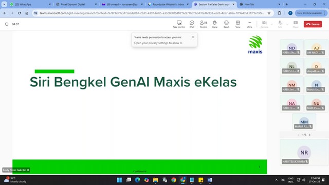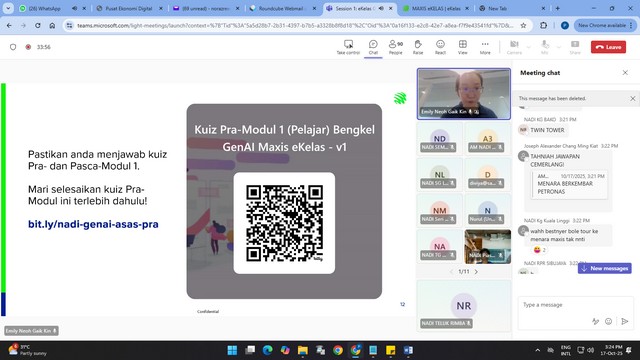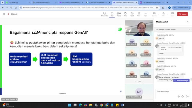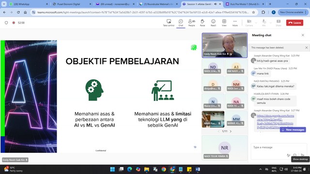 Pelajar daripada komuniti teluk rimba telah menyertai EKelas GenAI online Workshops yang berlangsung secara dalam talian menggunakan platform Microsoft TeamS di NADI Teluk Rimba.