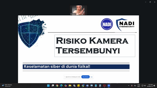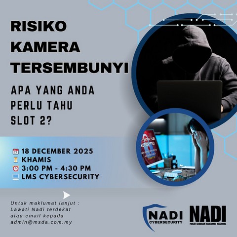 βDalam slot kedua webinar ini, peserta akan mempelajari dengan lebih mendalam bagaimana cara mengenal pasti kewujudan kamera tersembunyi, memahami risiko keselamatan dan privasi yang berkaitan, serta mengetahui langkah pencegahan dan tindakan yang boleh diambil untuk melindungi diri daripada pemantauan tanpa kebenaran.β