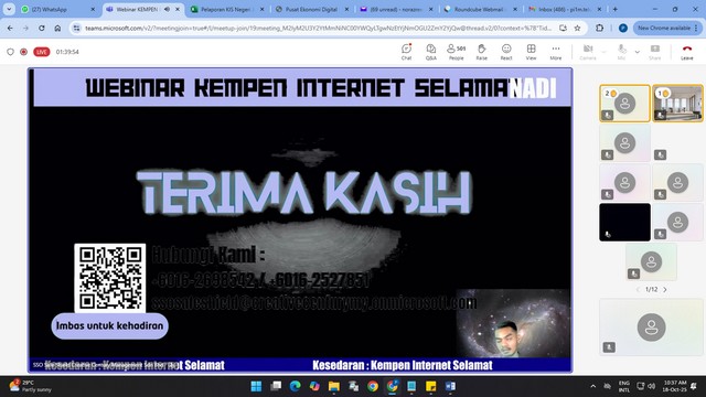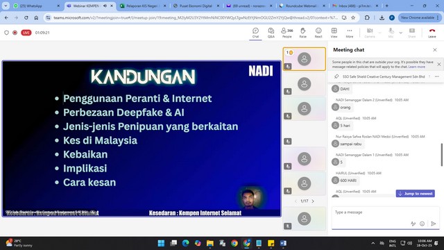 19 Oktober 2025 | Aktiviti TerkiniPelajar daripada komuniti teluk rimba telah menyertai WEBINAR KEMPEN INTERNET SELAMAT 07-12TAHUN DEEPFAKE & AI yang berlangsung secara dalam talian menggunakan platform Microsoft Teams di NADI Teluk Rimba.