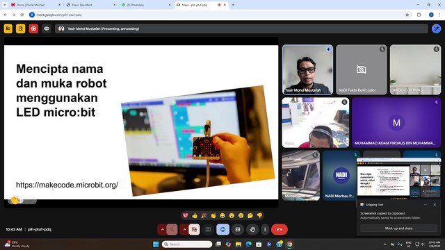3 Ogos 2025 | Aktiviti TerkiniPelajar daripada komuniti teluk rimba telah menyertai Kelas Tiny Teachies Bengkel Microbit Sekolah Rendah yang berlangsung secara dalam talian .Bertempat di NADI Teluk Rimba.
