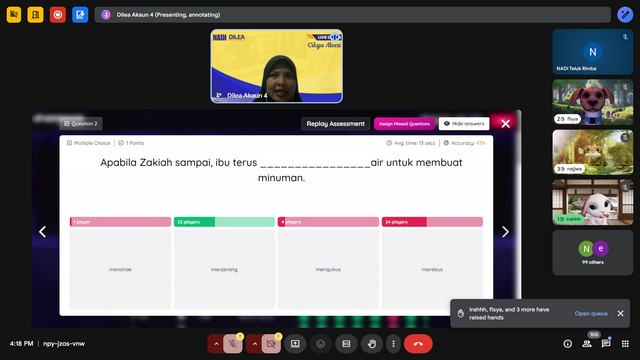 24 Oktober 2025 | Aktiviti TerkiniPelajar daripada komuniti teluk rimba telah menyertai Kelas open tuition Bahasa Melayu Oleh NADI DILEA yang berlangsung secara dalam talian melalui platform LMS Dilea di NADI Teluk Rimba.