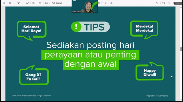 8 Ogos 2025 | Aktiviti TerkiniWebinar ini bertujuan bagi membimbing para usahawan memahami cara merancang, melaksanakan dan menilai prestasi kempen pemasaran digital secara lebih sistematik. Tenaga pengajar menjelaskan langkah-langkah utama dalam mengurus pemasaran digital termasuk penetapan objektif, pemilihan platform (seperti Facebook, Instagram, Google Ads) dan penghasilan kandungan yang sesuai. Selain itu, peserta turut didedahkan kepada alat analitik seperti Google Analytics, Meta Insights dan UTM Tracker untuk menilai keberkesanan setiap kempen secara berangka.