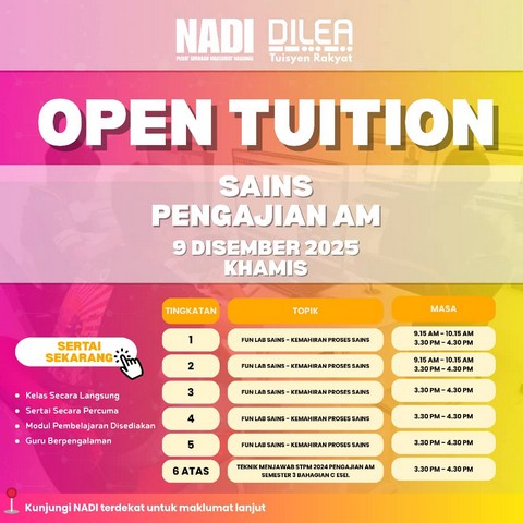 Jom sertai Open Tuition bersama NADI DILEA: Tuisyen Rakyat! 🚀