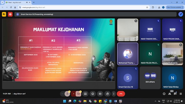 10 Oktober 2025 | Aktiviti TerkiniPelajar daripada komuniti Teluk rimba telah menyertai Kelas Esukan – Kepentingan Kesihatan dalam e-sukan berlangsung secara dalam talian menggunakan laman sesawang NADI E-Sukan di NADI Teluk Rimba.