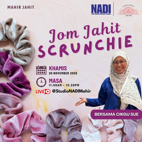 Jom sertai Short Learning Course (SLS) by NADI Mahir! Dalam sesi ringkas ini, peserta akan belajar teknik asas membuat scrunchies comel sesuai untuk kegunaan harian, hadiah atau permulaan bisnes kecil.