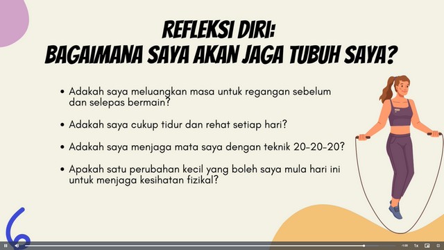 - Mengajar tentang proses pemulihan fizikal yang berkesan untuk mengelakkan kecederaan dan masalah otot/sendi.