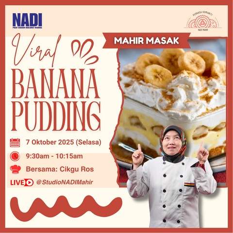 Program NADI X MAHIR MASAK bertujuan mengajar komuniti cara membuat kek pisang (banana pudding) yang viral. Program ini telah berlangsung pada 7 Oktober 2025 di pelbagai lokasi NADI di seluruh negara.