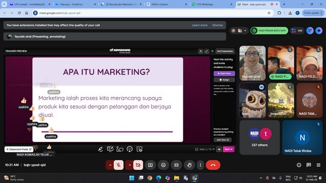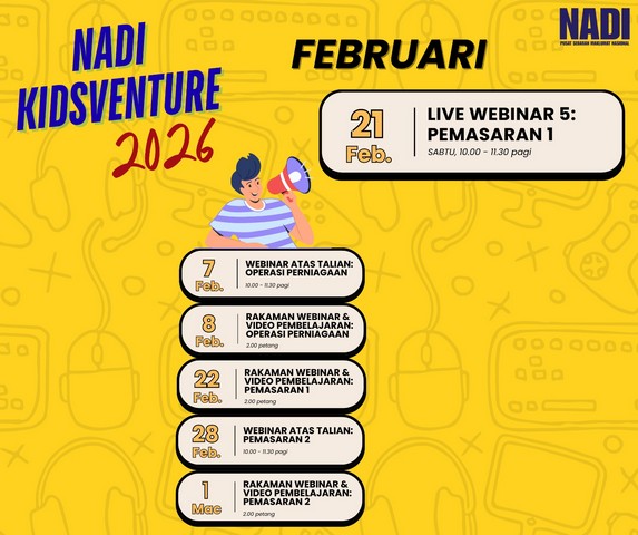 Pada 21 Februari 2026, KIDSVENTURE sekali lagi melangkah ke hadapan dengan penganjuran Live Webinar siri kelima bertajuk Pemasaran 1. Sesi yang berlangsung dari jam 10.00 hingga 11.30 pagi ini memberi peluang kepada peserta muda untuk memahami asas pemasaran secara interaktif dan menyeronokkan.