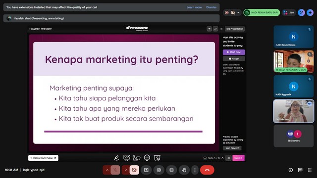 Program ini menjadi wadah pembelajaran yang bermanfaat, menghubungkan ilmu dengan pengalaman praktikal, sekaligus memupuk minat peserta terhadap bidang pemasaran sejak usia muda.
