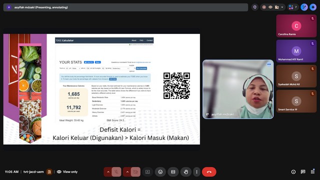 Sepanjang sesi, peserta didedahkan dengan kaedah praktikal dalam mengawal pengambilan kalori, memahami keperluan nutrisi harian, serta kepentingan gaya hidup seimbang. Program ini diharap dapat membantu masyarakat mengamalkan tabiat pemakanan yang lebih sihat dan berkesan dalam usaha mengekalkan berat badan ideal.