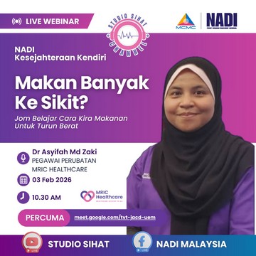 3 Februari 2026 | Aktiviti TerkiniPada 3 Februari 2026, satu program bertajuk “Wellbeing NADI-Care: Makan Banyak Ke Sikit – Jom Belajar Cara Kira Makanan untuk Turun Berat” telah diadakan di laman sesawang NADI. Program ini memberi fokus kepada kesedaran pemakanan sihat serta teknik mengira jumlah makanan yang sesuai untuk menurunkan berat badan.