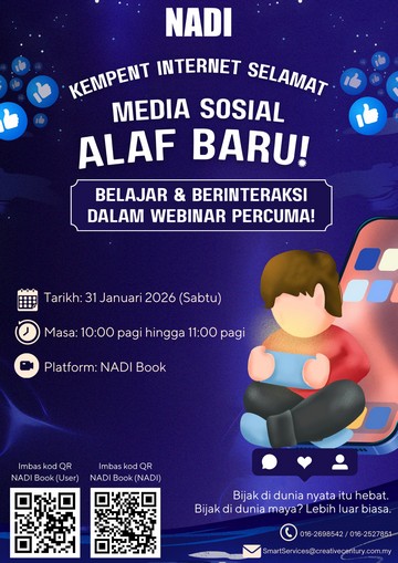 Pada 31 Januari 2026, satu webinar bertajuk “Kempen Internet Selamat: Media Sosial Alaf Baru” telah diadakan dari pukul 10.00 pagi hingga 11.00 pagi. Program ini bertujuan meningkatkan kesedaran masyarakat tentang penggunaan media sosial secara selamat dan bertanggungjawab dalam era digital.