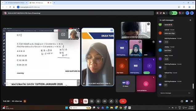 5 Januari 2026 | Aktiviti TerkiniPelajar daripada komuniti teluk rimba telah menyertai Kelas tusyen matematik yang berlangsung secara dalam talian menggunakan laman sesawang NADI Dilea di NADI Teluk Rimba.