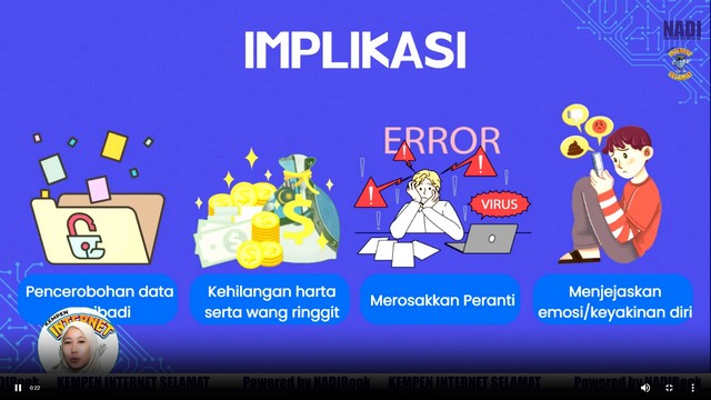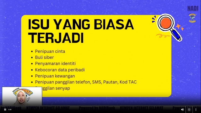 Sepanjang sesi, peserta diberi pendedahan mengenai cabaran keselamatan siber, kepentingan melindungi maklumat peribadi, serta peranan individu dalam memastikan penggunaan teknologi yang bertanggungjawab. Webinar ini diharap dapat membentuk komuniti digital yang lebih berwaspada dan beretika dalam menghadapi era teknologi moden.