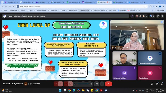 Peserta diajar bahawa kejayaan dalam hidup memerlukan usaha berterusan, sama seperti naik tahap dalam permainan. Dengan panduan ini, komuniti pelajar digalakkan menjadikan minat terhadap game sebagai motivasi untuk berkembang secara positif dalam pelajaran dan masa depan.